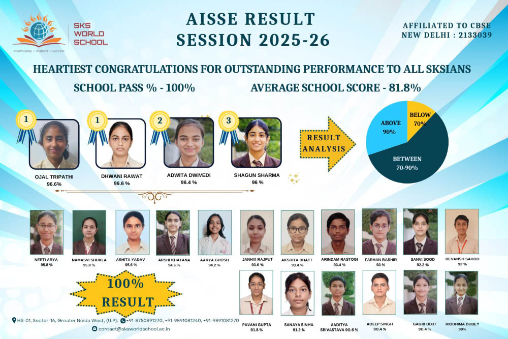 SKS World School, being one of the Best International School in Noida expressway, is an English medium co-educational institution that runs under the aegis of the SKS Educational & Social Trust, led by its dynamic and visionary Chairman Shri S.K Sharma. The School follows CBSE based curriculum and is widely regarded as one of the best school in Noida Expressway, South Delhi and East Delhi.… In addition to the pursuit of academic excellence SKS World School always strives to provide a holistic and meaningful education with a focus on providing education beyond books, nurturing talents and imbibing good values, the curriculum is enriched by all round extracurricular activities to bring forth the inherent potentials of each and every child, proving it one of the Top Ranking air conditioned school in Noida, South Delhi and East Delhi. SKS World School ranks high among the best International school in Noida and Delhi/NCR.